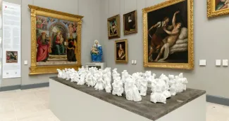 Toutes les œuvres présentées à la Galerie du musée pourront être découvertes par le toucher. L’une des sculptures de Denis Monfleur, Dubuffet (2019), déclinée en bois et en bronze, est intégrée au parcours de l’exposition Prière de toucher ! L’Art et la Matière jouant sur la perception des matériaux et les sens des visiteurs.