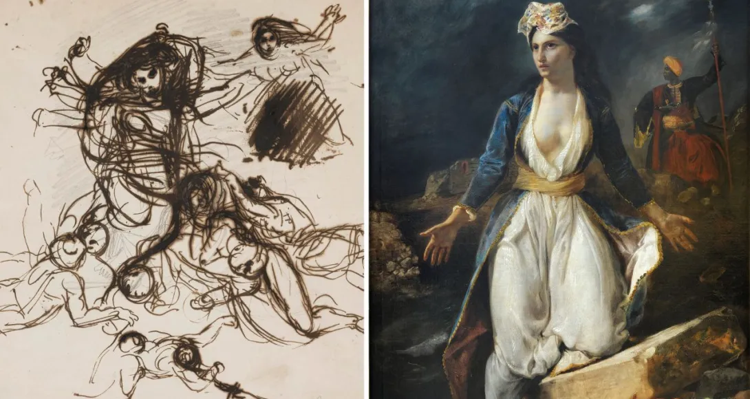 Eugène Delacroix, Etude et Œuvre La Grèce sur les ruines de Missolonghi. Photo : F. Deval, mairie de Bordeaux.