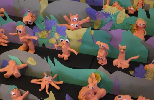Entre 2022 et 2024, les élèves du groupe scolaire Jules Ferry à Bordeaux Caudéran ont travaillé sur le modelage et la réalisation d’un film en stop-motion dans le cadre de l’exposition Denis Monfleur. Peuples de pierre (2023). Chacune des classes a suivi une visite au musée autour du paysage végétal, puis de l’exposition. Les 200 élèves des écoles maternelles et élémentaires ont ensuite rencontré des professionnels de la création visuelle et artistique pour créer La Cacophonie du Petit peuple.