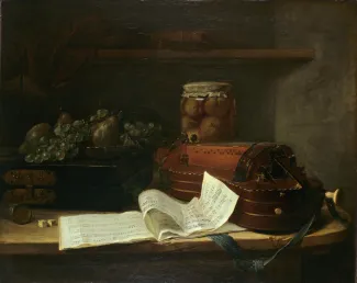 Roland de la Porte est un peintre français du 18e siècle, passé maître dans l’art de la nature morte. Issu d'une famille d'artistes, il se forme dans la tradition du baroque français et développe un style raffiné, marqué par la précision du trompe-l'œil et un sens aigu du détail. Il excelle dans la représentation des objets du quotidien, qu’il s’agisse d’ustensiles de cuisine, d’instruments de musique ou de vases précieux, qu’il met en scène avec une attention minutieuse aux textures, aux jeux de lumière et aux ombres.