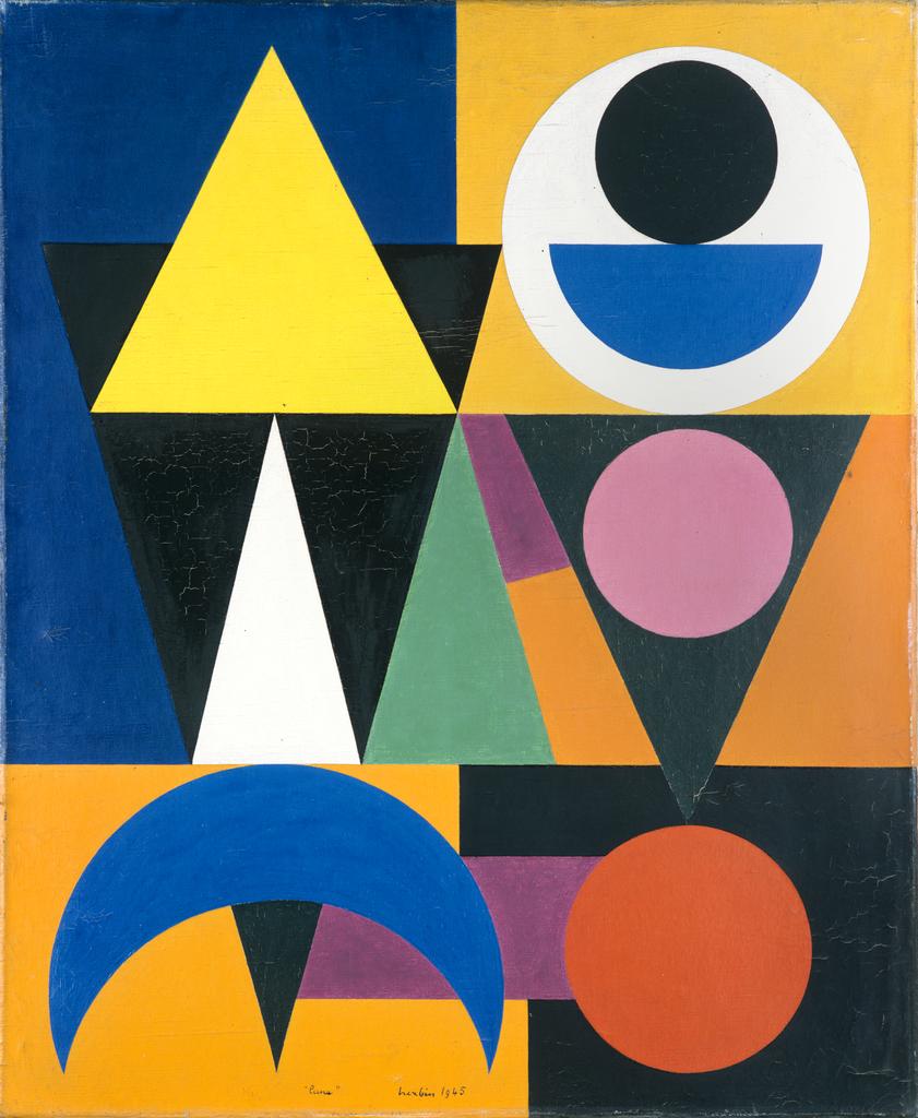 L’œuvre d’Auguste Herbin (1882-1960) est emblématique de l’abstraction géométrique. L’artiste élimine toute trace de geste, tout effet de matière, tout élément figuratif, et conçoit ses peintures selon un procédé systématique, pensé en amont.