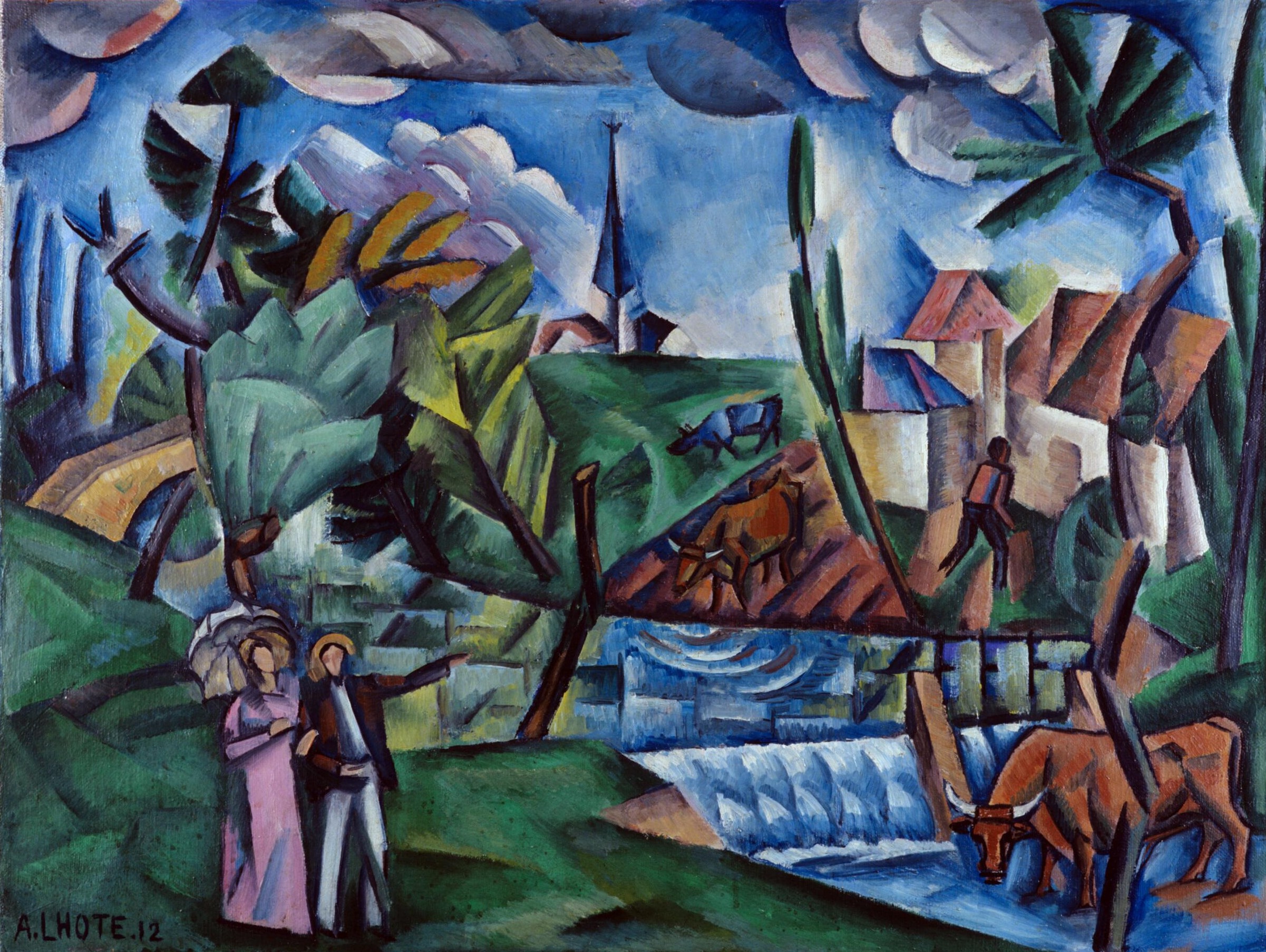 Théoricien, Lhote a assimilé les leçons de Cézanne, et pense que la vie est une succession d’images géométriques toutes parfaites. Recherchant l’harmonie et le rythme, il place des lignes de force et des obliques qui structurent la composition, tout en créant des plans intermédiaires réunissant les personnages ou les maisons. Lhote considère que le peintre, tout comme le poète, a pour mission de créer des rimes plastiques.