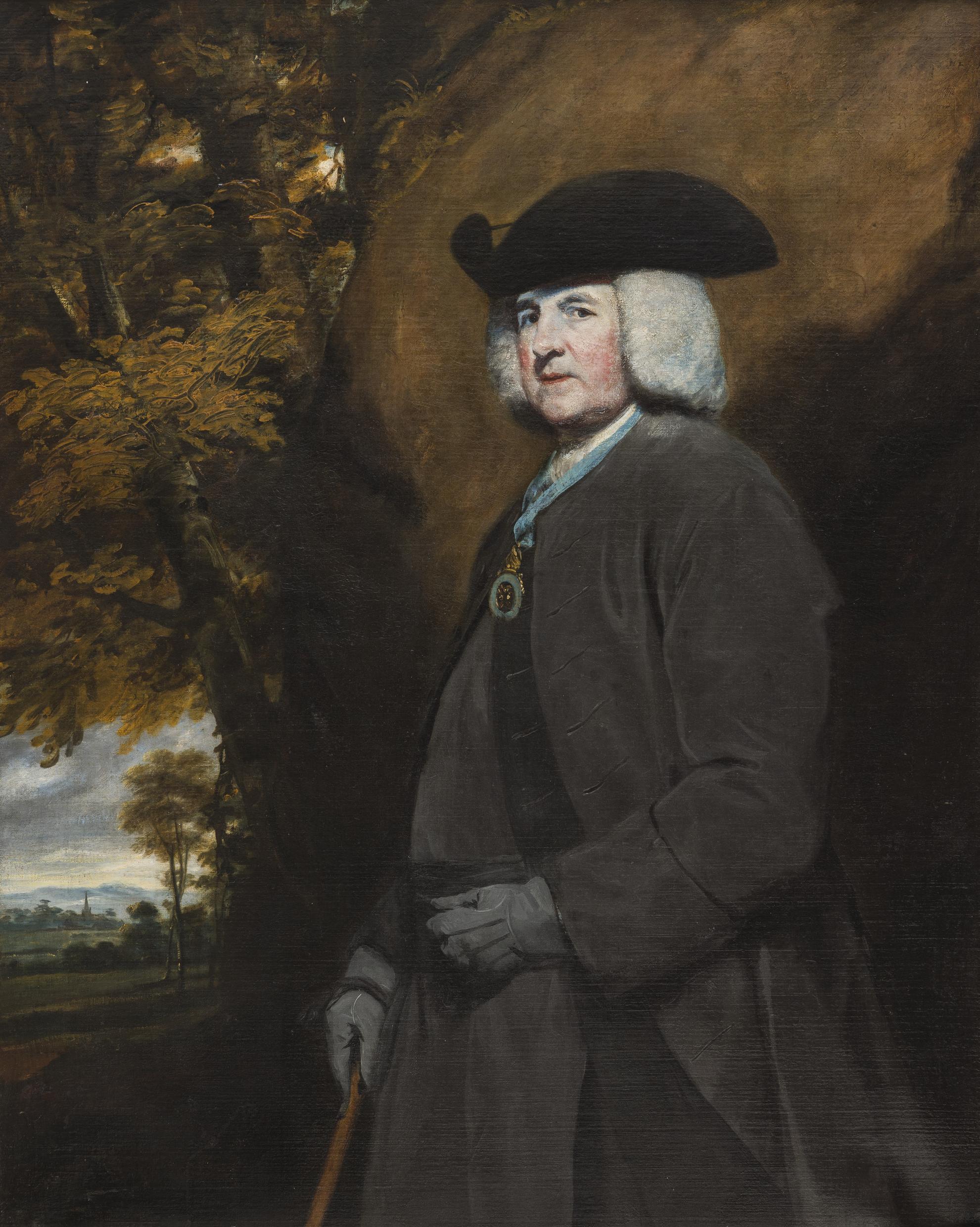 Représenté de trois-quarts, appuyé sur une canne, le modèle adopte une posture déterminée sur un fond de paysage automnal. Délaissant l’habit épiscopal, Robinson porte un vêtement d’extérieur sobre mais raffiné, dont le tissu gris ardoise accroche subtilement la lumière et s’accorde à la couleur de ses gants. Le ruban bleu et la médaille de l'Ordre de Saint Patrick, ostensiblement tournée vers le spectateur, ont été ajoutés plus tard, après que Robinson ait reçu cette distinction en 1783. Son visage poudré, portant perruque et tricorne, le montre dans la force de l’âge, alors âgé de soixante-six ans. Au 18e siècle, les portraits d'évêques ainsi représentés sont rares : Robinson a plutôt l'allure d'un gentleman. Il souhaite en effet se montrer digne de la noblesse irlandaise. Il fait appel à son ami Joshua Reynolds, l’un des plus grands portraitistes de sa génération. Robinson avait précédemment commandé deux portraits en buste à Reynolds : en 1758 (collection particulière) et en 1763 (Oxford, Christ Church). Exposé à la Royal Academy en 1775, le portrait de Bordeaux reçoit un accueil des plus favorables. Robinson a fait graver cette œuvre pour diffuser son image auprès du public irlandais.
