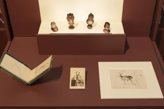 L’une des originalités de l’exposition consiste à présenter une importante sélection d’études et d’esquisses peintes et dessinées, permettant d’apprécier la part du dessin dans le processus créatif de l’artiste, et donnant à voir des feuilles d’une rare beauté. Une esquisse monumentale totalement inédite, récemment découverte au château Rosa Bonheur, est exposée pour la première fois ainsi que des photographies dessinées qui révèlent un aspect inattendu de la création de l’artiste. Des parts plus insolites de son travail souvent destinés à une sphère plus intime (peintures sur galets, marrons sculptés …) sont également présentés. Enfin, l’exposition insiste sur la personnalité de Rosa Bonheur, son humour, son goût pour les caricatures et les fructueuses relations qu’elle entretenait avec des personnalités du monde musical, littéraire ou scientifique de l’époque.