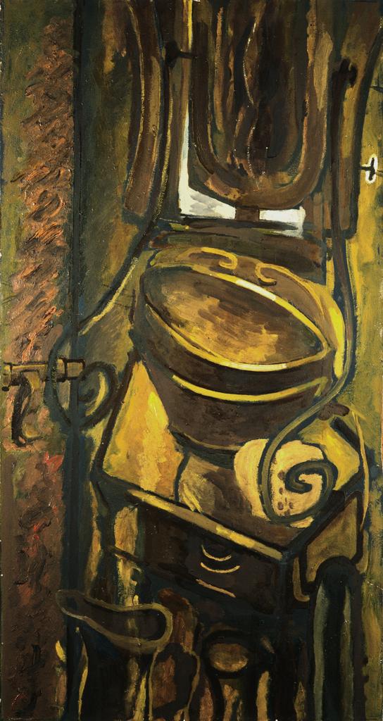 Pendant la Seconde Guerre mondiale, son style, d’une sobriété poussée jusqu’à l’ascétisme, reflète l’austérité et la dureté de l’époque. L’humilité des objets représentés - un broc, une cuvette et une éponge - s’accompagne d’une palette restreinte : des tons sombres et terreux, où dominent le vert, l’ocre, le brun foncé et la terre de Sienne, qui portent la marque du temps.
